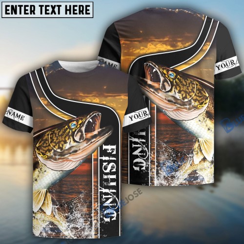 Bluejose Walleye Fishing Sunset Custom Name 3D Shirt