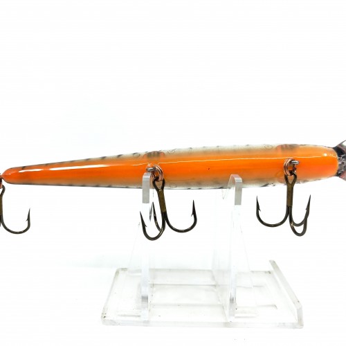 Bomber Long A 15A, GPTBRO Gold Prism/Black Back & Bars/Orange Belly Color. About 5″ long. This bait is used but appears to have never been fished before and is in overall great condition. Perfect to fish or collect. See photos.