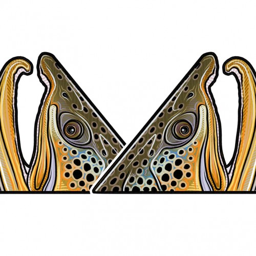 The Surface Collection is a series of artworks designed to give the appearance of a fish breaking the surface of water. For the full effect, place these decals against a definitive edge (bottom of a vehicle window or bottom of a coffee mug) to create an implied waterline. See the last image for placement examples.