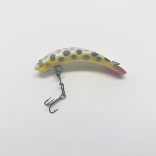Cisco Kid 200 Series, Perch Color. About 4 1/4″ long including lip. Great vintage Cisco Kid lure here. Great for fishing, walleye, bass, pike! Great for collecting. This is a newer vintage Cisco Kid but still hard to find! Lure is used but appears to have never been fished and is in overall great condition. See photos. Fish or collect! A tougher Cisco Kid to find.