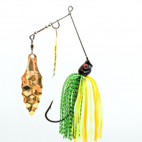 Based on our tried and true Cobra spinnerbait, the Cobra V2.0 has been completely reimagined to introduce custom “Kunai” blades. The combination of the unique shape, flash, and tight rotations allow this lure to be fished faster to cover water quickly. Ideal for targeting bullseye snakeheads in south Florida’s canals, the Cobra V2.0 features snakehead grade components that are overbuilt for most other species of fish! Featuring premium components such as a custom realistic jighead built on a heavy duty 6/0 hook with a wire bait keeper and hand-tied skirt, this spinnerbait is guaranteed to outfish, outperform, and outlast all others on the market!