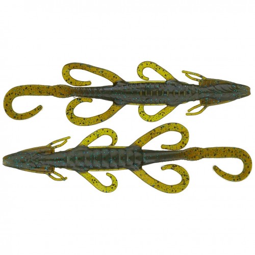 Culprit Lures Water Dragon Soft Bait Lizard – The 6″ and 7″ Water Dragons® are designed to impress from head to tail and with form, function and much more action features than a standard lizard — this design will trick the wariest bass into striking! First, the head is designed with gills and gill filaments for a new look and extra gliding function on Carolina rigs. The body is filled with detail and contour to make a more realistic presentation, reflecting light in many directions and breaking up the image. There is also a lateral line that is easily adapted with a marker-style pen for added color and a large flat spot on the tail.