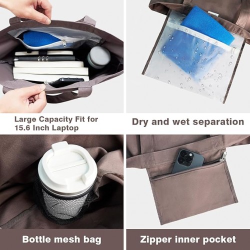 - Multiple Pocket Design: Zipper inner pocket for cellphone, money, keys and small items. Wet and dry separation pockets for towels, dirty clothes, etc. Water bottle fixed mesh bag