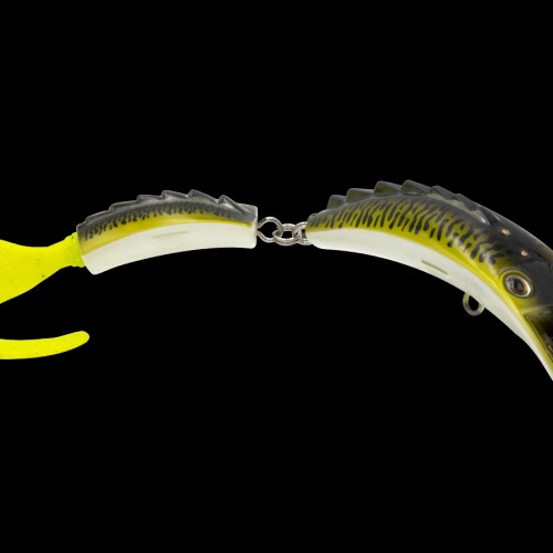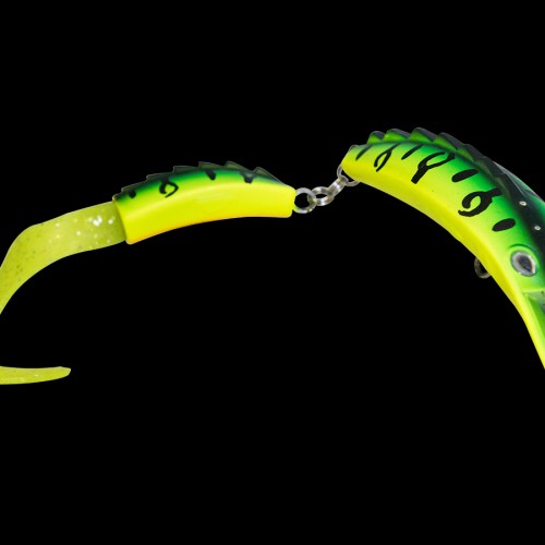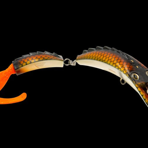The DIRTY DANCER has the wildest action and vibration a tiger muskie will ever see. The Dirty Dancer’s action starts with the dished-out nose and continues through the extended, jointed body, allowing it to vibrate and shimmy aggressively. This creates an erratic enticing action that is tailor made for tiger muskie, pike and true muskie.