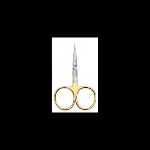 The last time I saw a pair of scissors with a point this sharp, it was attached to a $70 price tag (really!). Everyone tying trout flies size-16 or smaller needs these scissors. Arrow 3-1/2″ length, All Purpose 4″ length 1-blade serrated, gold loops. Straight Only.