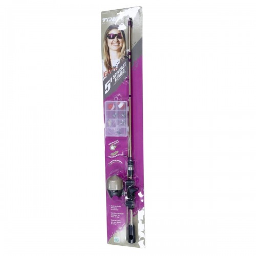 The Eagle Claw TC55CC1 Trait Zaldain Spin Cast Combo with Tackle box is everything that you need to get started. This Rod and reel has been approved by and designed by Trait Zaldain for the use of the lady angler. 5 Foot, with a medium power, is it a great entry level rod and reel combo. With just enough tackle to get out on the water right out of the package.