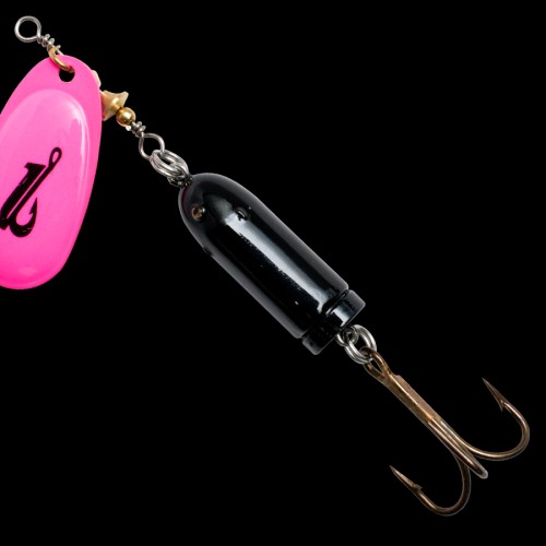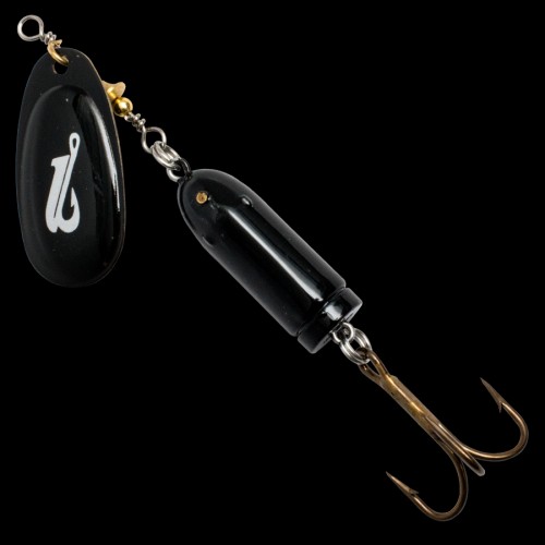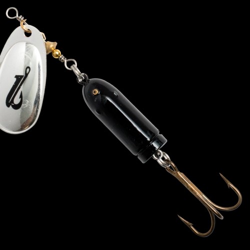 This lure unites fish-catching tradition and revolutionary technology. The EBS SPINNER 58 advances the time-tested abilities of the classic inline spinner. Flashing blades are enhanced by EBS TechnologyTM, which emits the actual biological sounds of baitfish (shad and perch) that predator species like muskie, walleye, striped bass, etc., feed on. EBS effectively doubles the Spinner’s fish-attracting range. The lure is an innovative combination of sound and attraction!