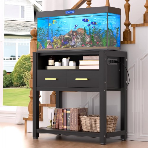 Enhance your aquarium setup with this versatile and durable aquarium stand. Designed for tanks up to 10 gallons -20 gallons, it combines stability, convenience, and style, making it the perfect choice for both novice and experienced aquarium enthusiasts. Why Choose This Stand? With its sleek, modern design, this stand enhances any room decor, turning your aquarium into a stylish focal point. Its a complete solution for anyone seeking quality, convenience, and aesthetic appeal in one package. More detail you interested. With the hole management, say goodbye to tangled cables! The adjustable feet provide a different choice of height for your needs. The anti-tilt device provides more load-bearing support. Product Size: 31.5 H *30.7L *15.7 W Lower Shelf Size: 14 H* 27.5 L* 12.6 W The countertop maximum capacity: 550LBS The bottom shelf max capacity: 200LBS