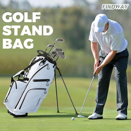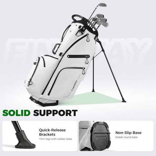 - 【Sturdy Base and Stand】: Findway golf bag for men and women is reinforced with a solid base, which has unwavering stability on all terrains. Avoid shaking or tipping, firmly accompany you to complete your golf activities. The push-type bracket design allows you to easily take out the golf clubs when in use. There is a Velcro on the bracket when not in use.