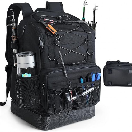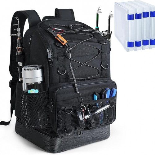 - 【ADJUSTABLE & THICKENED SHOULDER STRAP】: The fishing backpack with rod holder and cooler; ergonomic load-reducing carrying system disperse the pressure on the shoulders, ensuring no stustiness even after long-term carrying fishing tackle box backpack it’s ready for whatever the outdoors throws your way