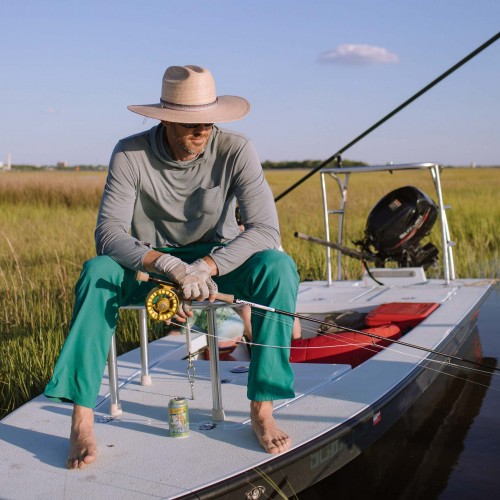 Offers distinctly western accents while preserving a timeless coastal style. Designed for all-day protection, the flat brim and a low, pinched crown of this hat will stand up to the rigors of years under the sun. The Lowcountry is right at home poling a skiff around an endless coastal marsh or enjoying a laid back afternoon on the river. Signature Fishpond webbing accent, 4.5″ brim, Guatemalan Palm with UPF 50+ equivalency.