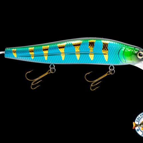 FLIPPER is the only dive and rise jerk bait, which is also a crankbait making it very versatile for straight trolling. The rear metal tail provides flash and depth/wobble, and is adjustable for more of a free glide action-or more wobble it’s 10” / 25.4cm in length not including tail and weighs in at 3.7 oz. / 104.89g With the internal weight transfer system to help you cast further or work the bait falling nose first or tail first ignites the bites, couples with our EBS TechnologyTM which call the fish in from double the distance of ant traditional lures with rattles.