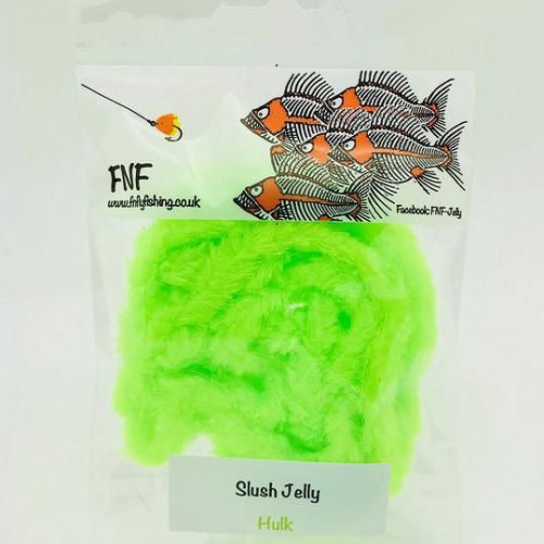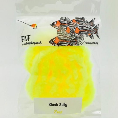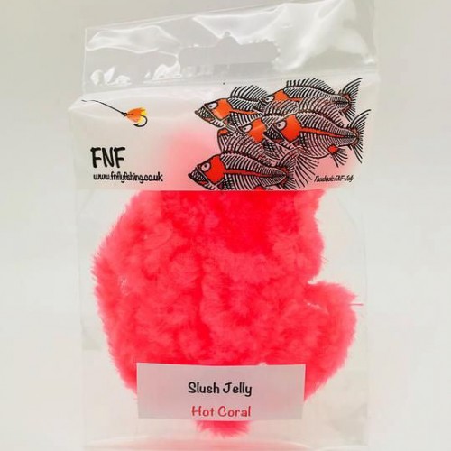 FNF Slush Jelly – FNF have spent a lot of time perfecting an easy to use 15mm fritz/chenille that gives a slush like appearance in the water. A mixture of jelly fibres and a candy floss like compound gives this material its slushy appearance when wet. Slush Jelly is a 15mm fritz/chenille mounted on a micro core.