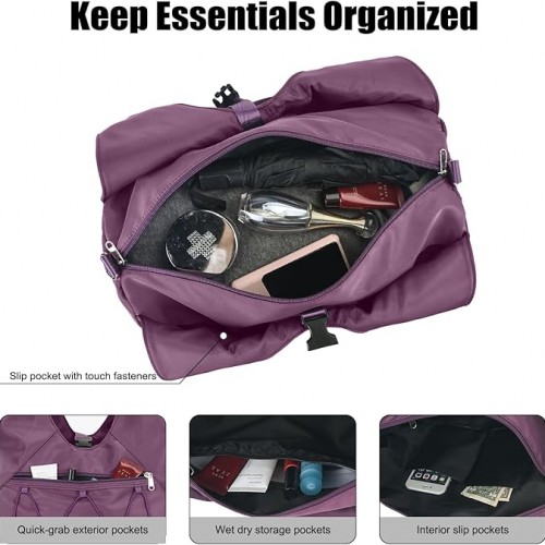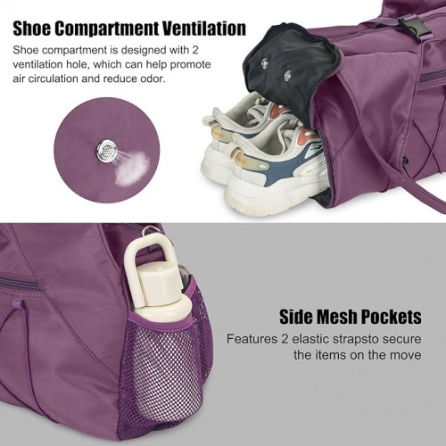 Forestfish Gym Bag For Women With Yoga Mat Holder & Shoe Compartment & Wet Dry Storage Pocket & Adjustable Strap