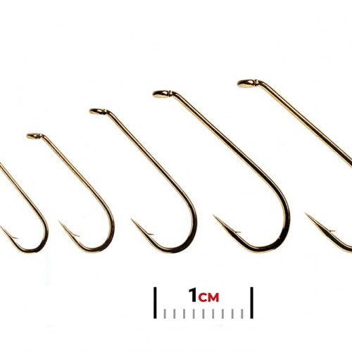 Continuous bend, down eye, 2X-heavy, standard shank, forged with stealthy black nickel finish. The black finish gives certain patterns that extra edge. The heavy wire ensures extra strength and adds a little weight to nymphs and wet flies. Also great San Juan Worm style flies. 50-pak