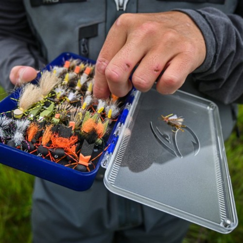 The Fulling Mill Hopper box was conceived as a real multi-purpose all rounder. With room for 216 patterns the box has good depth to suit a variety of sizes. Benefiting from a sleek, premium frosted lid you can see what’s what before lifting the hood. The addition of guide ridges to the outer casing helps you keep a firm grip on things. Magnetic closure. Size: 32 x 106 x 186mm