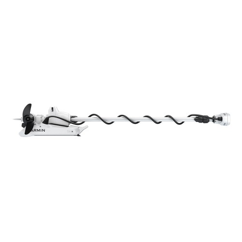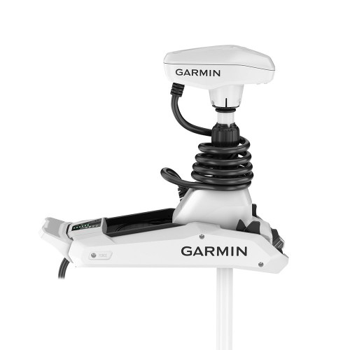 The Garmin Force Kraken is a bow-mount trolling motor built for deep-V hulls and higher-freeboard boats where space at the bow can be tight. It runs on 24 V or 36 V and produces up to 100 lb of thrust at 36 V or 80 lb at 24 V (ISO 13342).