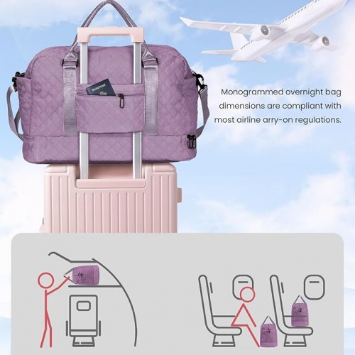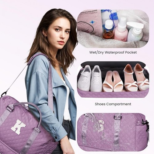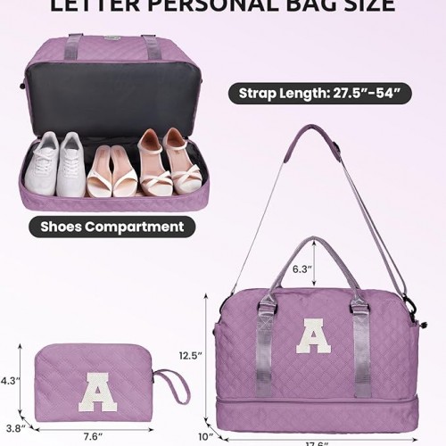 - 【Initial Weekender Bag&Cosmetic Bag】Our weekend bag stands out from the market with personalized letters, allowing you to choose the initial of your name or give it as a thoughtful gift to others. Our initial travel bag comes with a cosmetic bag for storing your makeup/toiletries.