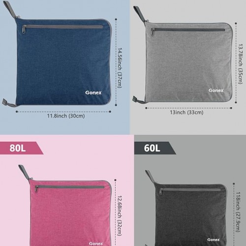 - Foldable travel duffle:It extends to 23.2 x 14.9 x 10.2 inches with a capacity of 60 L. The folded size is 11 x 10 x 1.6 inches, making it easy to store.Weighs only 1.19 pounds, at least 80% less than an empty suitcase, but still offers the same storage capacity as a 60 L suitcase