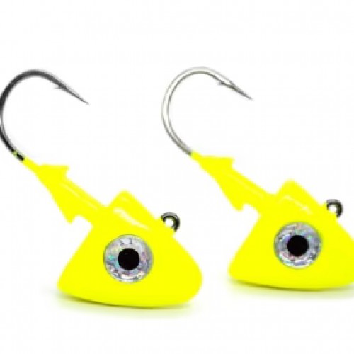 These round jig heads are designed with a flat back for a snug fit with soft plastics. 3D eyes give a real-life-like look. Five per pack.