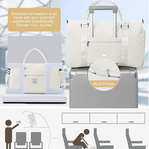 - Multifunctional Travel Bag: Our weekender bag adopts a simple design and is suitable for women and men. Comes with detachable adjustable shoulder strap that can adjust the length to fit different heights and reduce shoulder pressure. Back side sleeve makes this bag can be slide over the suitcase or luggage bag handle for carrying easily. Easily carried as a handbag, shoulder bag or crossbody bag, which is the perfect partner for short-distance, travel and air travel