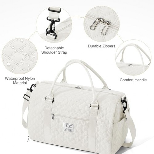 - High Quality Gym Bag: Gym bag size: 46*25*28CM/ 18.1*9.8*11.0″. The duffle bag is made of durable nylon fabric, water-resistant surface and linings with good breathability. With smooth zipper, sturdy handle and reinforced stitching make the duffel bag more durable. Easy to wash this ultra lightweight quick-dry traval bag. The spacious interior of this women’s overnight bag can hold the daily necessities needed for a 3-5 day trip