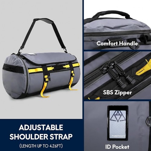 - 3-IN-1 CONVERTIBLE DUFFLE BACKPACK: The Haimont duffle bag quickly converts to a travel duffle backpack that comes with removable shoulder straps, an adjustable chest strap. The exterior of the bag is equipped with 4 side soft carry handles which offers a variety of carrying options. It is easy to convert and reduce the burden of traveling