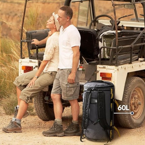 - DURABLE DUFFEL BAG: Haimont large duffel is made of heavy-duty tarpaulin which is water & abrasion resistant material. The seams are multi-reinforced, and the bottom is made of double-layer ripstop material. The SBS zipper make you can easily cope with all kinds of environments. Durable duffle bag makes you confident when traveling, camping, sports, adventures, hiking and driving