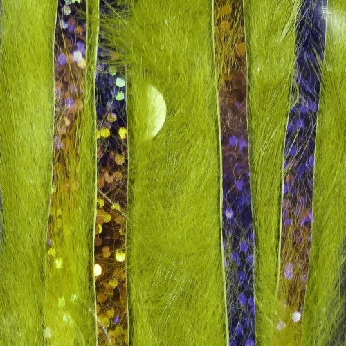 Bling Rabbit Strips add a new dimension to the current product line of our rabbit strips, by adding solid and holographic accent colors to the hide. This idea rooted in the fact that the hide side of the strip should have its own features. Adding bright holographic and florescent contrast colors to the hide side of the strip adds a unique contrast that gives maximum attraction qualities. Bling Strips are not difficult to cast, and while field testing these strips it was noted that the increased subtle stiffness in the hide provides a non-fouling attribute that added another positive check marking its favor.