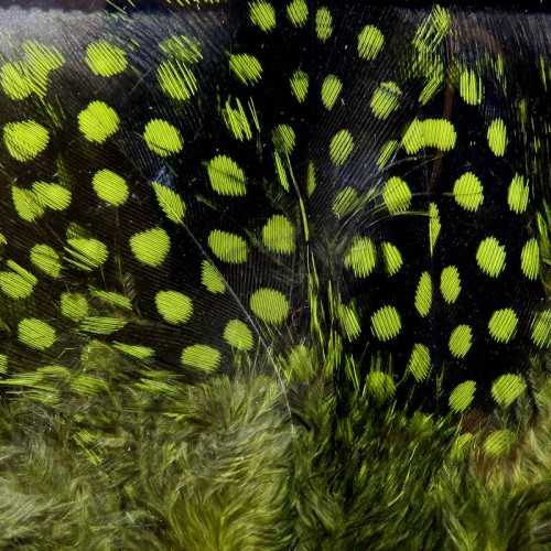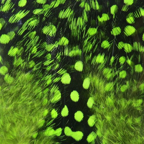 Hareline Dubbin UV2 Large Eyed Guinea Feathers are strung fly-tying feathers treated with UV2 double-dye to deliver enhanced ultraviolet reflectance and fluorescence. Designed for fly tyers, these guinea fowl feathers add bold, large-eyed spots and natural movement to streamers, intruders, steelhead and salmon patterns. Hareline’s UV2 treatment increases contrast and visibility in low-light or stained-water conditions to help patterns stand out on the water.