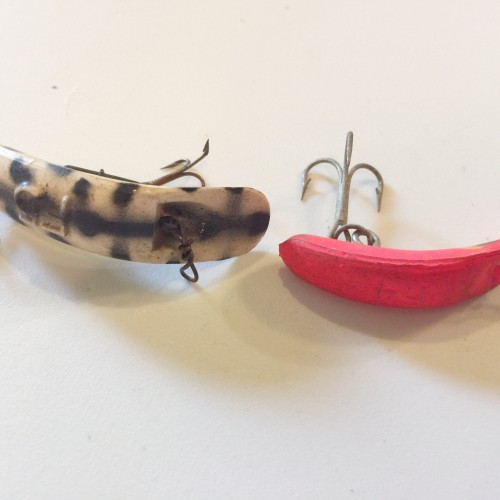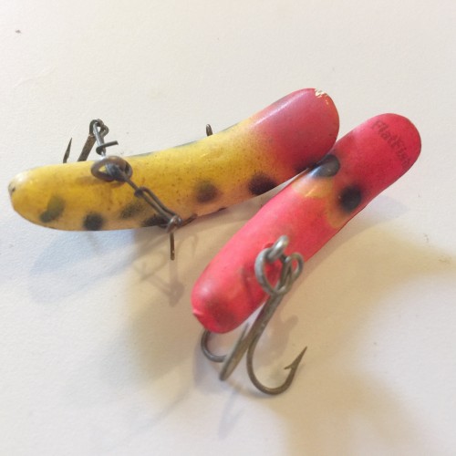 Helin Flatfish Fly Size Lot of Two! F4 and F5. Great little lures here. Awesome to collect. Very tiny. Used but in good shape, see photos. F4 is the orange one.