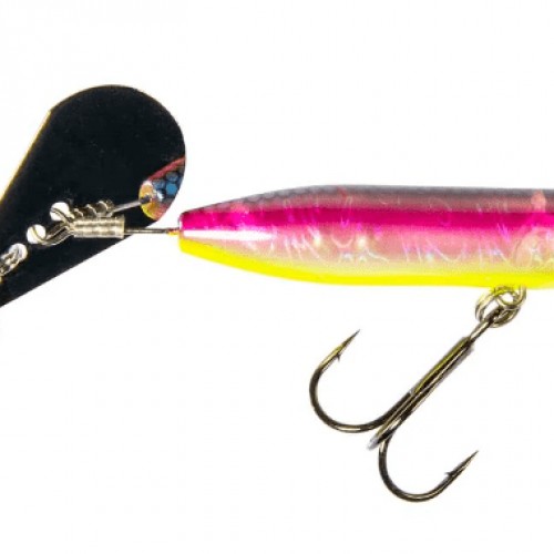 An original, ‘self-walking’ topwater lure, Z-Man’s 5-inch HellraiZer™ slashes, sputters and carves the surface unlike anything you’ve seen before. Designed by ChatterBait® inventor Ron Davis, the HellraiZer™ is power-driven by an exclusive, weighted tail blade. A simple, straight retrieve effortlessly planes the lure to the top, where it delivers its crazed fleeing action at slow or fast speeds. A thin, elongated, minimalist body sports a belly line tie and a single treble hook. The weighted tail blade connects to a rear, feathered treble hook to accentuate swimming motion and focus strike attention. Ten body-blade-feather patterns cater to any situation or water color.