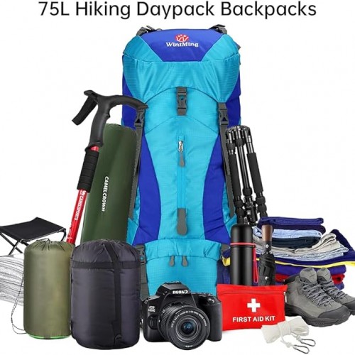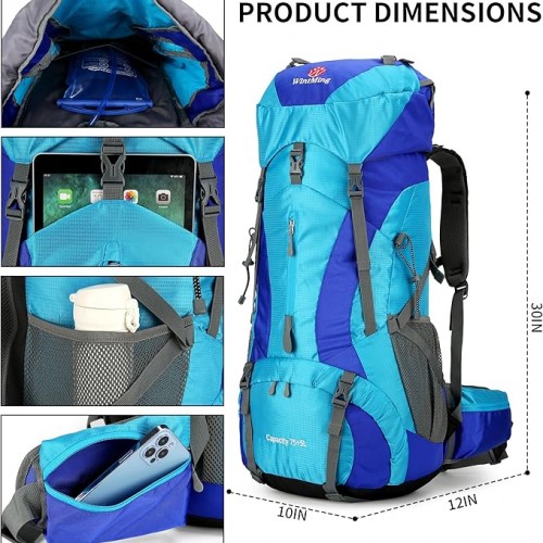 - Large Capacity Backpack: Travel backpack with 75L storage space(30 * 12 * 10inch), easily hold all your camping and hiking essential stuffs, multi-compartments design are convenient enough to help you further organize things, and designed a separate shoe warehouse.