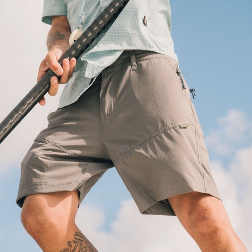 The Shoalwater Tech Pants are so popular we had to create shorts using the same sweet features and technology! Like their long-legged brethren, these shorts are designed to take you to places wet and dry. We constructed them with the same 4-way stretch nylon/spandex blend, drawcord waistband and bungee closure, but added an extra zipper pocket at the side seam and front to hold all the good stuff.