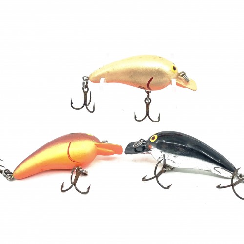 Imitation Flatfish 6 Pack. This pack includes 6 different imitations of the classic Helin Flatfish, each in different sizes and colors. Lures range in size from 1 1/2″ to 3″ long. Each are used with varying degrees of wear, see photos.