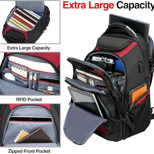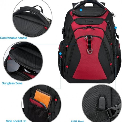 - MULTI-FUNCTIONAL COMPARTMENT: Our large travel backpack with separated compartments and pockets which can provide roomy space for your computer, iPad, power bank, A4 files, wallet, cards, clothes and more your items. A zippered pocket and a mesh one at each side can hold your umbrella, water bottle, etc. A sunglass hard shell zone is designed on the top which is convenient and safe for you to put your sunglass, cell phone etc