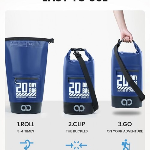 - All-Adventure Carry Solution – This dry bags waterproof feature adjustable shoulder straps for comfortable carrying and effortless removal, accommodating all body types. The 5L and 10L dry bags include a versatile single strap for single-shoulder or cross-body wear, while the 20L+ options boast dual straps for backpack-style carrying. Easily foldable for compact storage, these water proof bags offer versatile carrying options to suit your every need.