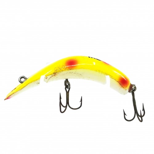 Lazy Ike 3, YS Yellow Spots Color. Classic Lazy Ike here. About 3″ long. Lure is used with some minor wear and marks but in overall good condition. Fish or collect. See photos. Plastic version.