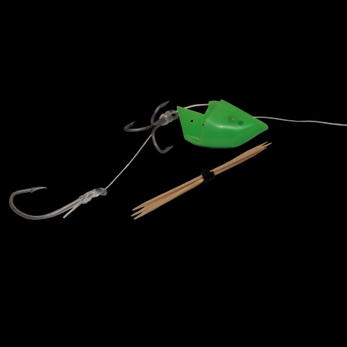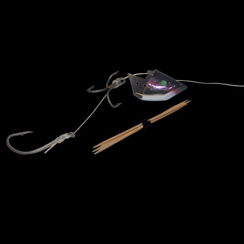 Rigged Anchovy Bait Holders have a VMC #2 treble hook and a VMC 4/0 Octopus Beak stinger hook. It comes with Sufix 84 inch 40 lb test leader line. It is ideal to roll anchovies, herring or plastic baits from 4.5 to 6 inches in length. 3 toothpicks are included in each pack to secure the line.