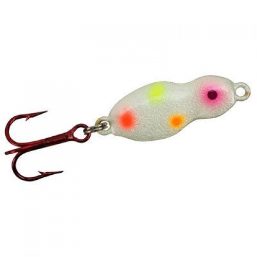 The Lindy Frostee Spoon features a Bleeding Bait red treble hook. It’s a potent teammate for small minnow heads, maggots, waxies, mini-plastics, and other light tipping fare. Ideal for down-sized vertical jigging on ice or open water! Super-hot for panfish and perch!