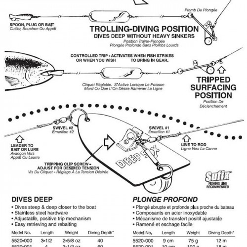 - Wide, slow trolling action