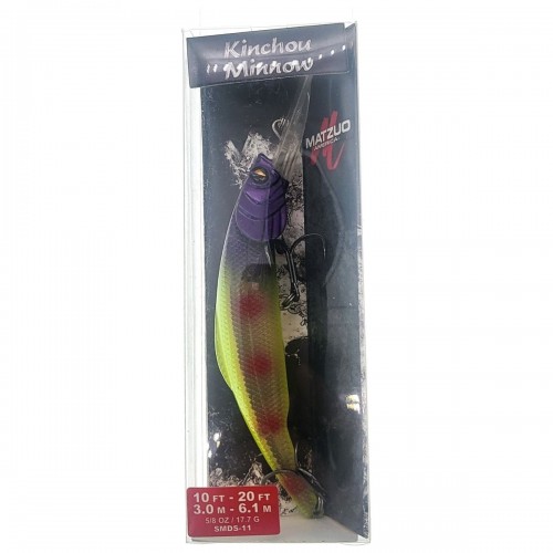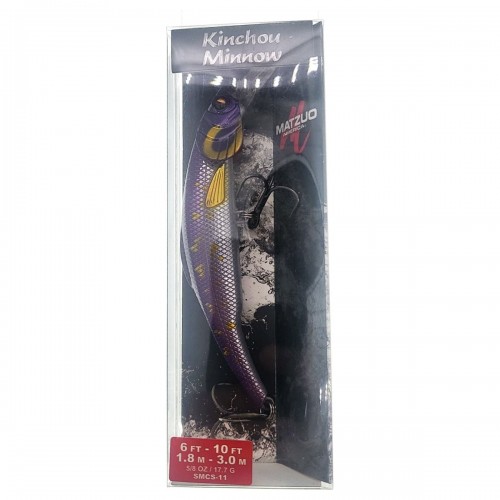Matzuo Kinchou Minnow Crankbait – The Matzuo Kinchou Minnow is recommended for cranking but excellent for trolling. This bait is perfectly balanced to float at rest, yet dive quickly when retrieved slowly. When trolled at a rapid pace, it just keeps digging deeper. These baits really look like distressed baitfish with our signature flared gills. It has a truly natural look that is excellent for trophy walleye, bass, pike, trout, and salmon. The Kinchou Minnow features the nervousness of an eccentric baitfish with its curved body and incredible wide wobble! Its aggressive wobble action will receive much attention as it swims thru the water. With its wide wobble, it creates a different resonating sound – different from any other bait. Retrieve or Troll – Fast or Slow! The Kinchou creates a high resonating rattle created by the stainless steel bearings chambered inside the body. The pitch of these bearings is highly attractive to both active and neutral fish.