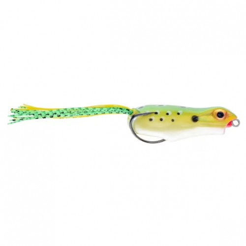 2″ Soft Body, top-water frog bait features a unique cupped mouth and colorful, multi-strand legs that provide continuous, enticing movement on the pause. The engineered, streamlined body allows anglers to “walk the dog” effectively while the cupped mouth spits water from side to side. Featuring welded, dual ultra-sharp hooks for more consistent hook sets and landed fish.