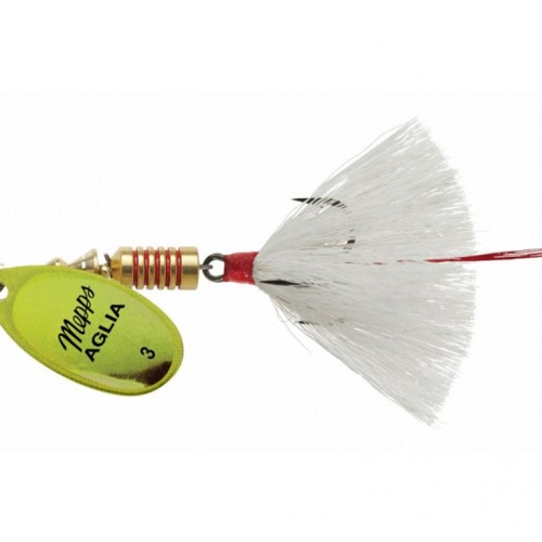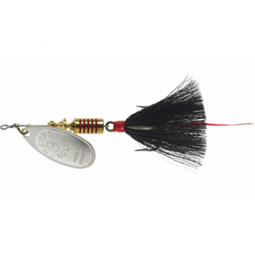 Designed with an emphasis on catching big smallmouth bass on big bodies of water. The hand painted blades & bodies with glitter which mimic various bait fish patterns that bass feed on, in addition, adds contrast to the blinding underwater flash of our silver, gold, copper & black nickel blades. The heart of any in-line spinner is the clevis. Our folded solid brass clevis is what allows the blade on every Mepps® lure to start spinning as soon as the lure hits the water. Perfect balance of premium hand-tied bucktail & flashabou. The flashabou is designed to be more pronounced in the middle, creating extra tail action & more flash when swimming through the water. The dressed treble hook on the Bronze Slammer is designed to offer an extra large profile that is over 20% larger than our standard Dressed Aglia® profile. The VMC® Barbarian® Treble Hook features a technical locking curve, offering a 25% improved hook up rate, which decreases the chance of losing out on a big fish.