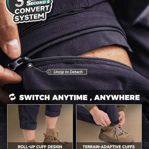 Moosehill Men’s-Hiking-Pants Convertible Quick-Dry Water-Resistant Lightweight Zip-Off Outdoor with 5 Deep Pockets