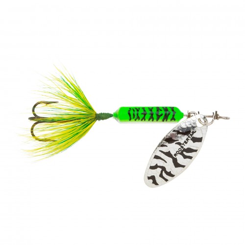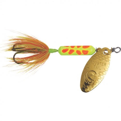 Worden’s Original Rooster Tails were developed in the 1950’s by Howard Worden as one of the most productive lures ever invented. The action of the spinning blade in combination with the colorful, pulsating hackle tail makes the Rooster Tail irresistible to any gamefish. It’s a lure that consistently catches fish. Original Rooster Tails are available in a large variety of colors and sizes so you are sure to find one just right for any fishing situation.