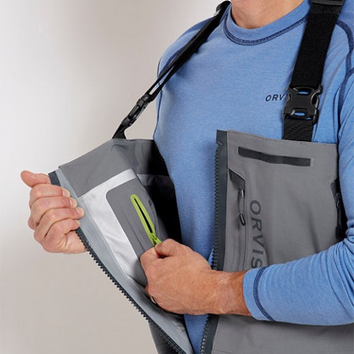 For convenience, comfort, and quick on-and-off, nothing compares to a these zippered PRO fly-fishing waders for men. The convenience issues are obvious, but the wader has to be of the highest quality construction to provide confidence in performance. The PRO Wader is the most durable, abrasion-resistant, and feature-rich wader we’ve ever built. Built with exclusive 100% CORDURA® fabric with four layers in the upper and five layers in the lower, the addition of a TIZIP® Masterseal waterproof zipper tested for more than 200 days, provides a remarkable level of combined convenience and performance. In the upper are split fleece-lined handwarmer pockets, two external storage pockets with YKK AquaGuard® coated zippers, and split Hypalon daisy chain for tool docking. Inside are two internal storage pockets for fly boxes and accessories. Adjustable elastic suspenders with opposing buckles for waist-high conversion. The five-layer lower incorporates removable OrthoLite® X25 knee pads, PU cage mesh gravel guards to eliminate drag and water collection, and anatomically correct neoprene booties. Athletic Fit. In shadow. Wader weighs approximately 52 oz. (medium regular). 100% nylon shell with polyurethane membrane. 100% nylon tricot liner. Imported.