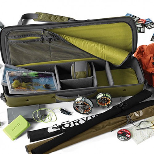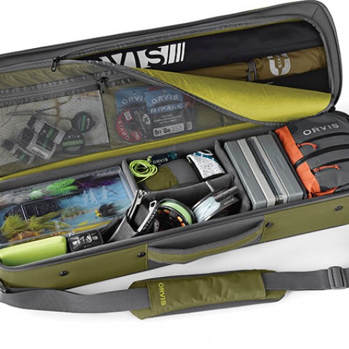 Orvis CEO Perk Perkins helped design this bag to meet the needs of the traveling angler. With his blessing, we have updated this bag to be even more user friendly. Rods are stored in a separate, padded compartment in the top. The bottom half has adjustable dividers and is designed to hold other critical gear like reels, lines, fly boxes, sunglasses, pliers, and terminal tackle. Unique shoulder strap allows the bag to be carried in a number of ways, making those long walks in the airport a little easier. Designed to be carried on airplanes, the bag is rugged enough to be checked if necessary. Nylon is coated along the bottom of the pack for increased water resistance. Nylon. Imported.