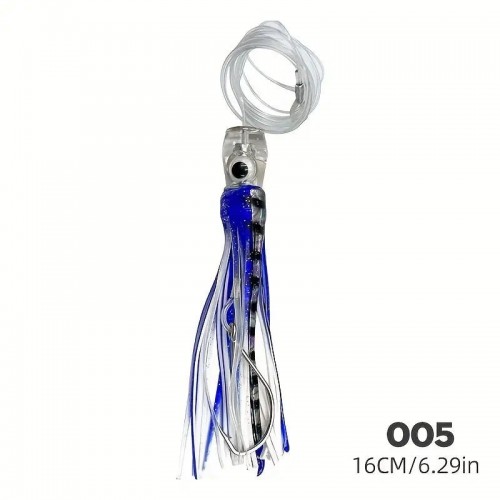 P-Line Rigged Squid W/ Tinsel Insert 4.5″ Green/Yellow Black Dots Qty 1