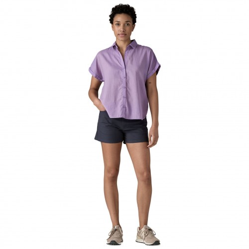Made with a blend of ultralightweight 95% organic cotton/5% hemp, this crepe-woven shirt has a slightly raised texture to keep fabric lifted from skin.